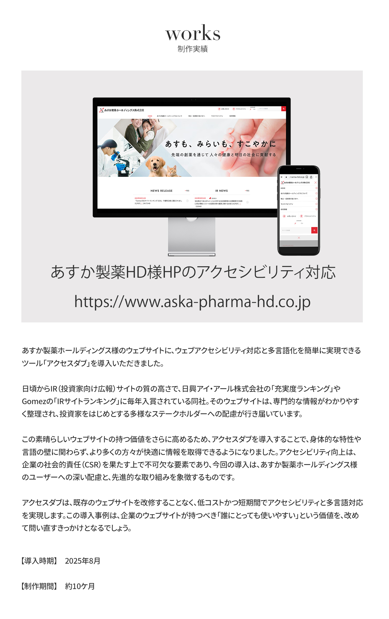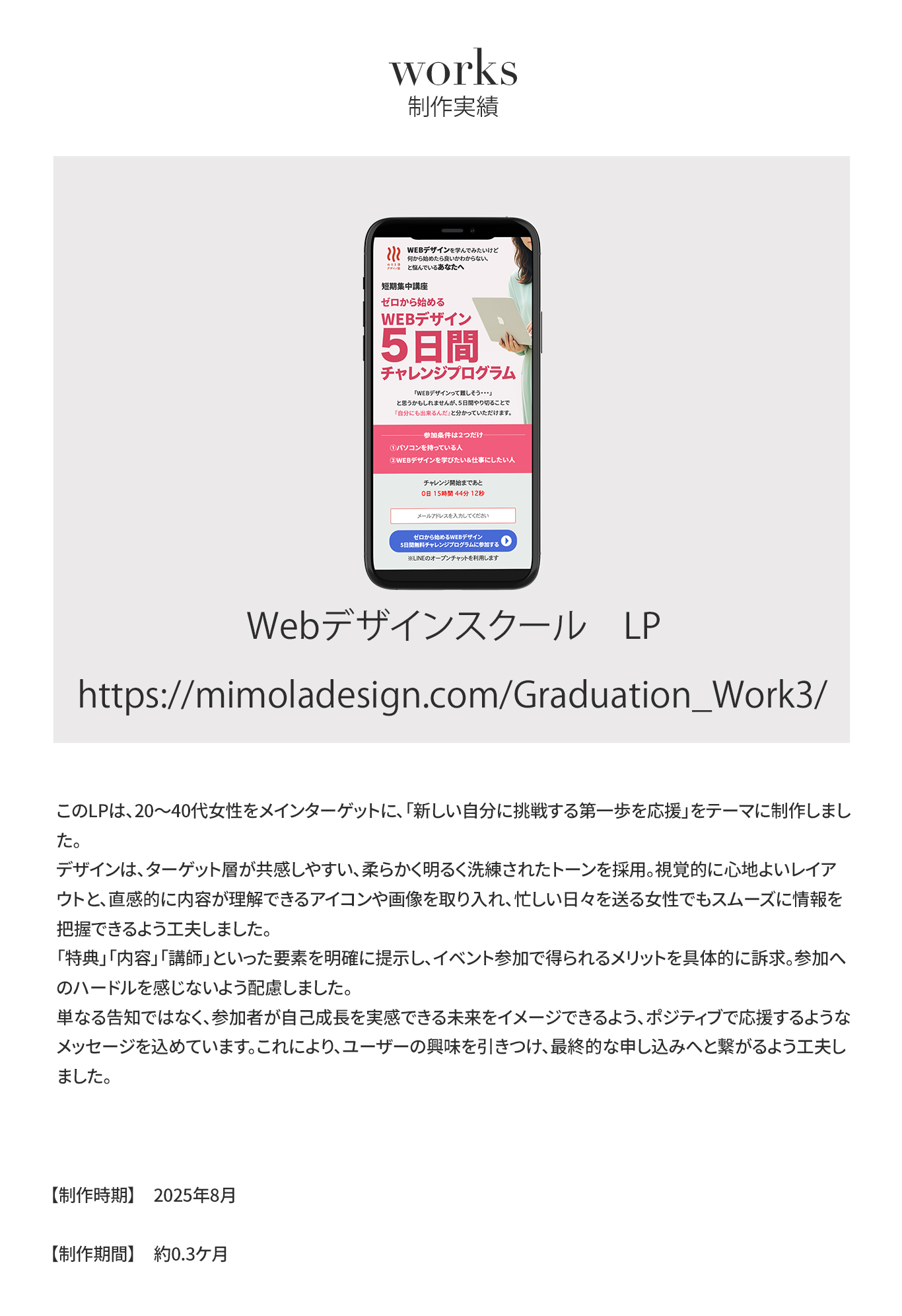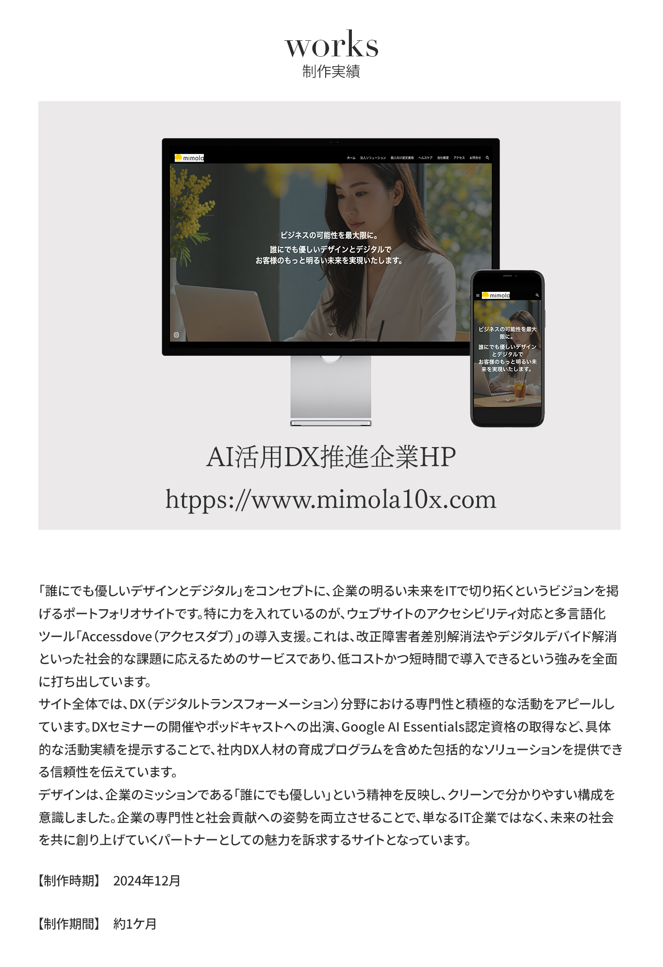 グルーバル技術商社HP DX・AI活用推進企業HP WebデザインスクールLP 高級インソールLP インドアゴルフスクールLP ナースリンクLP 大手製薬会社HPアクセシビリティ対応 各種Webバナー広告 ロゴ・アパレルデザイン 一覧に戻る 一覧に戻る 一覧に戻る 一覧に戻る 一覧に戻る 一覧に戻る 一覧に戻る 一覧に戻る